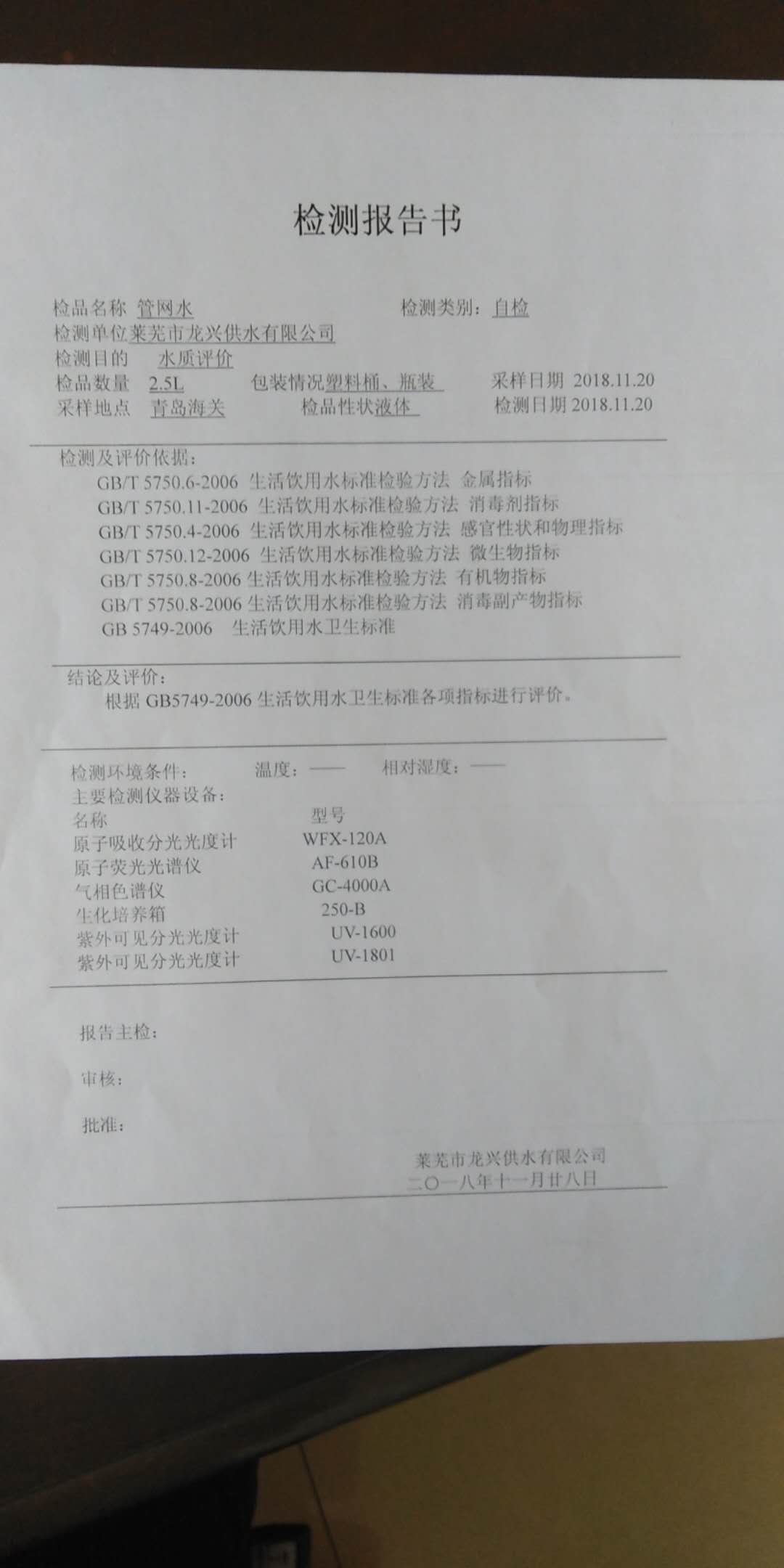 上一篇: 青島海關管網水水龍頭水質檢測報告