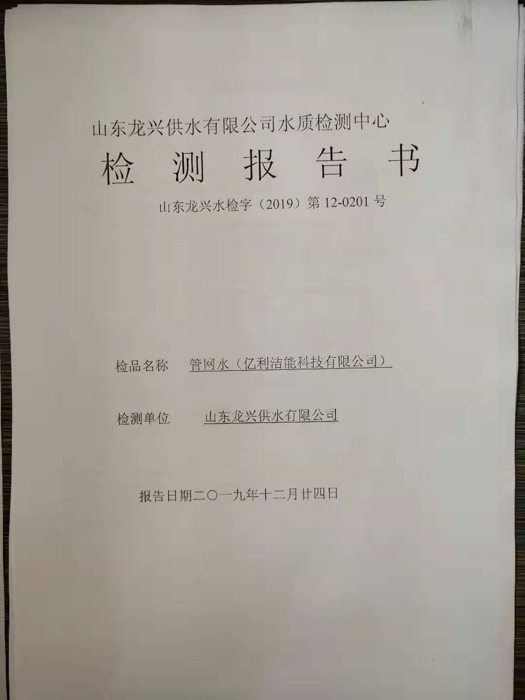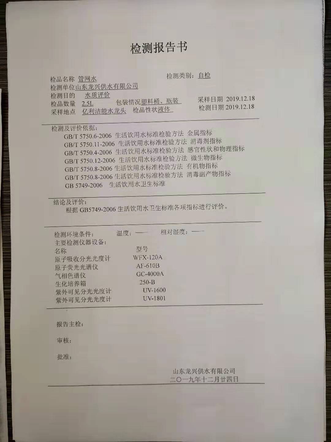 12月億利潔能管網水龍頭水質月檢報告