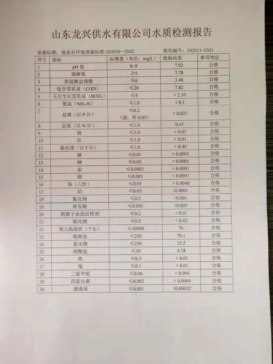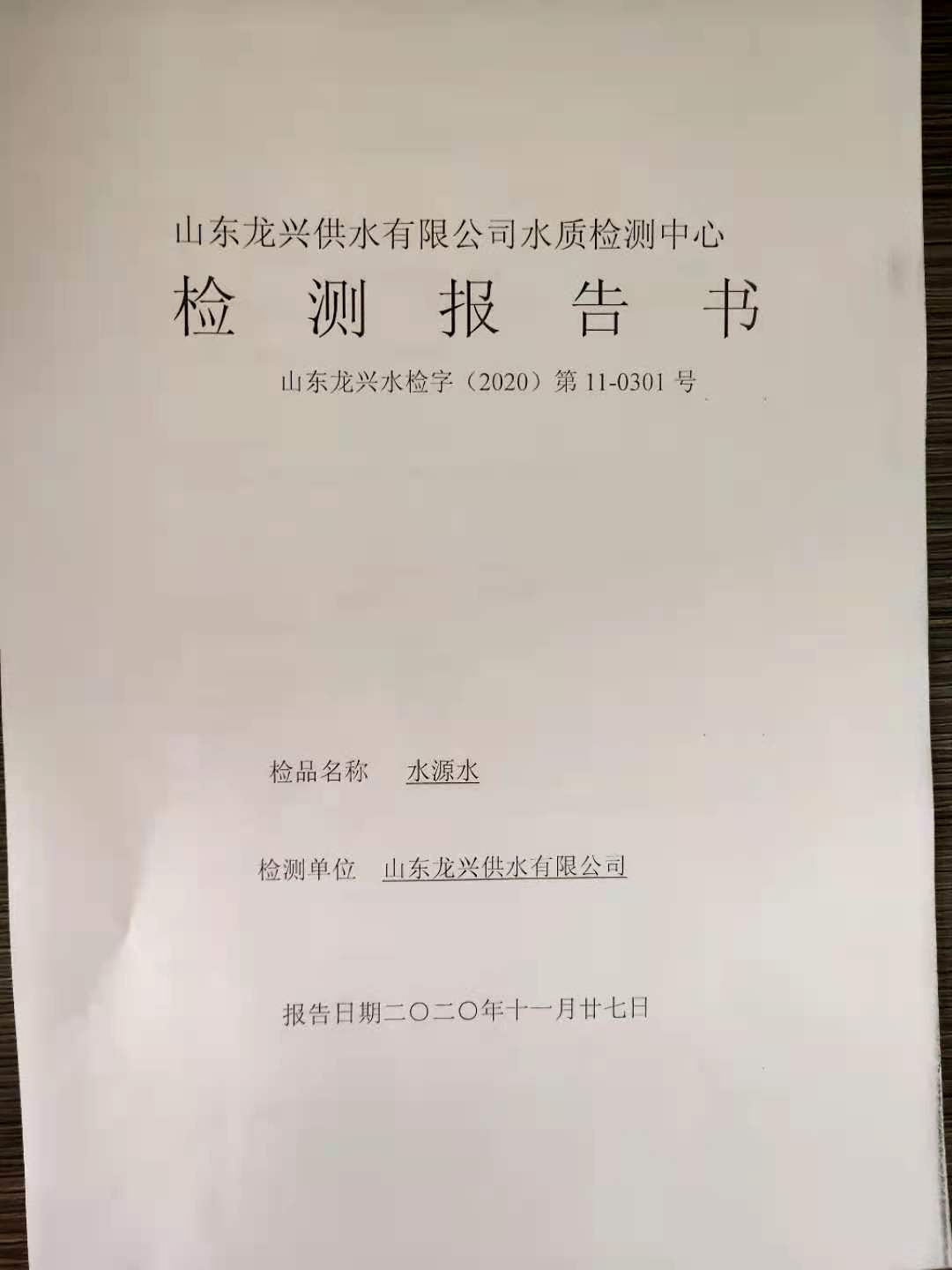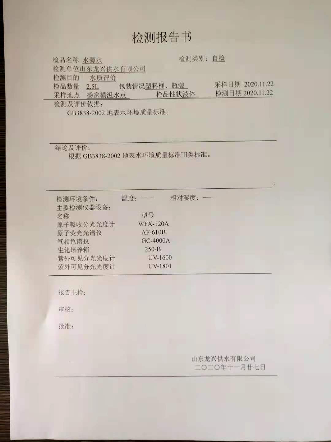 2020年11月水源水月檢報告