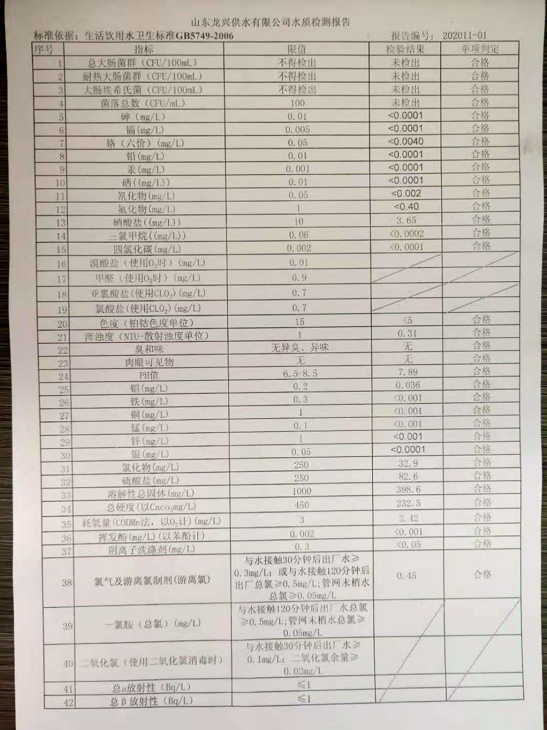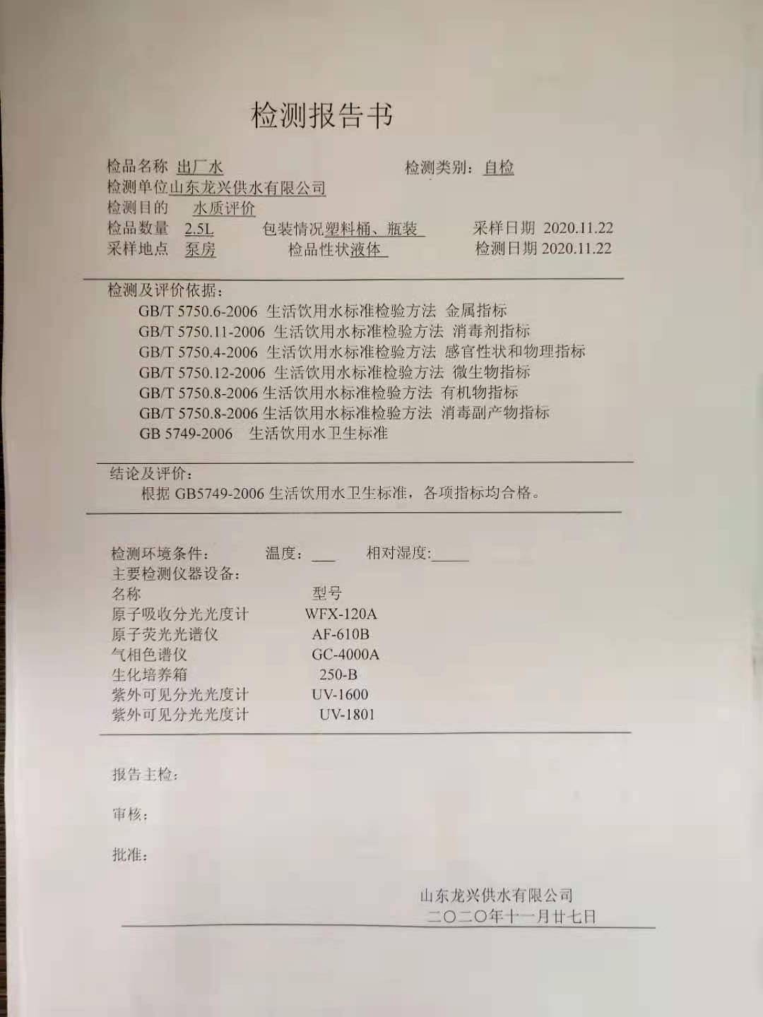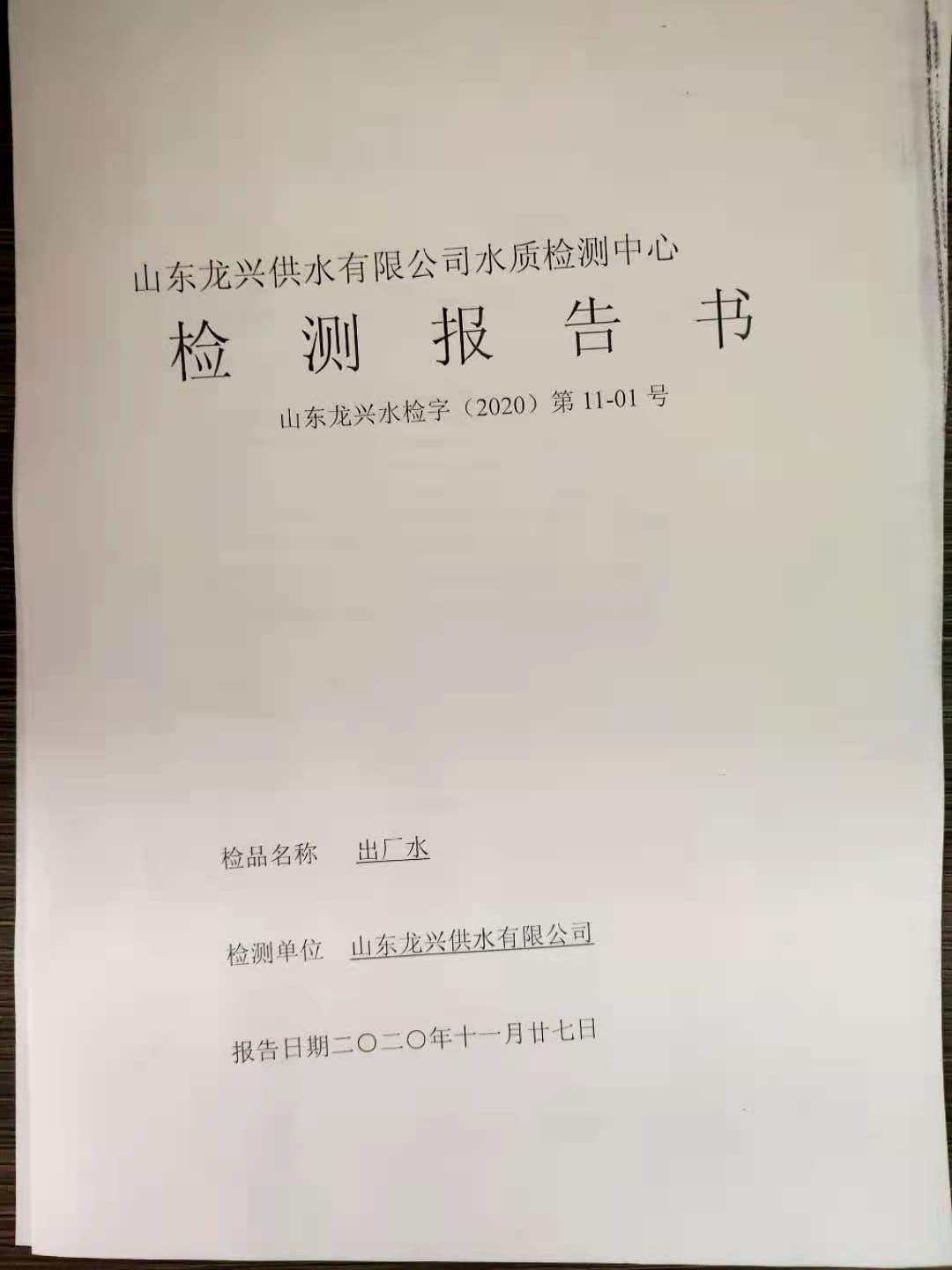 2020年11月出廠水月檢報(bào)告