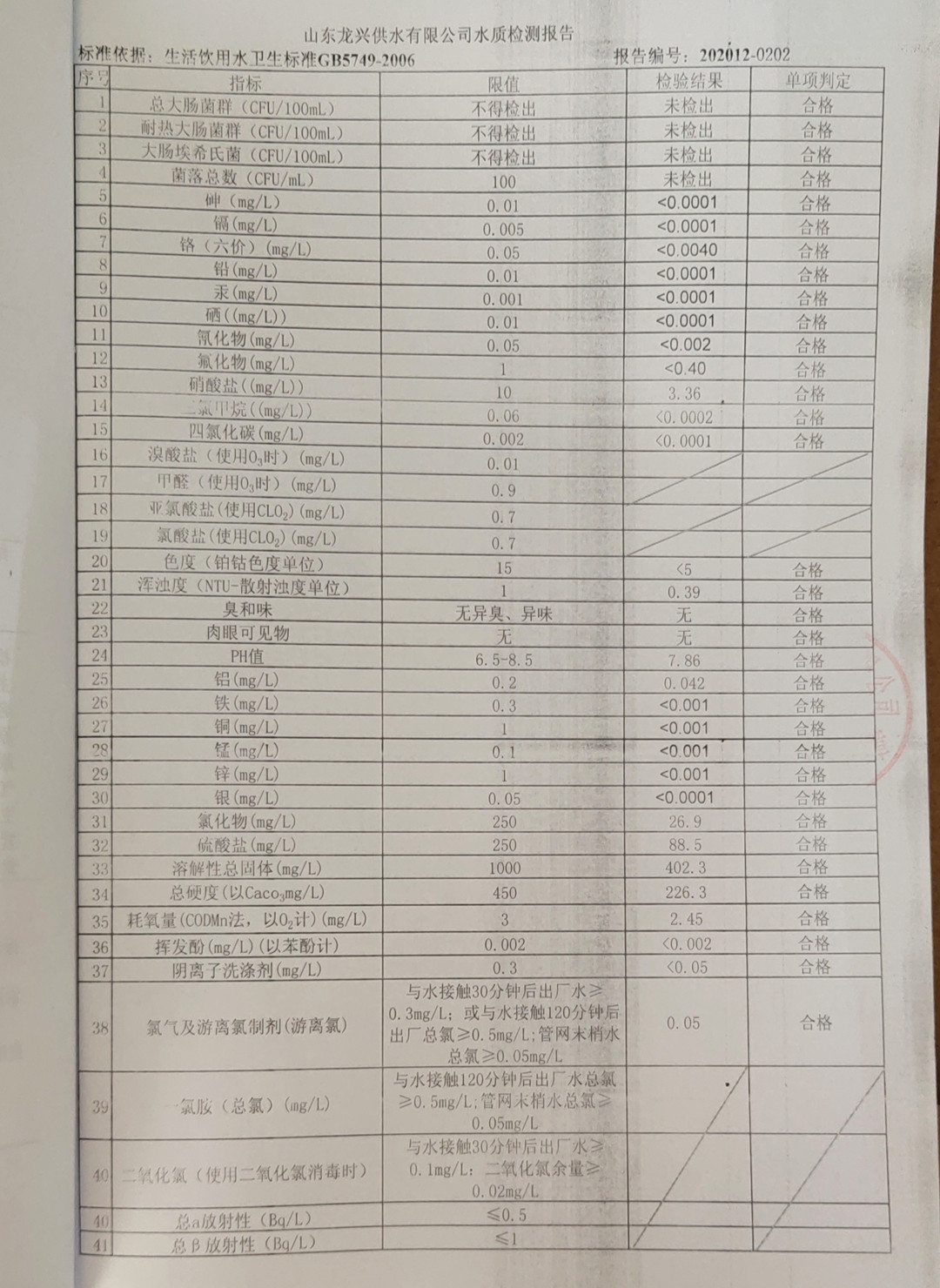 2020年12月管網水月檢報告